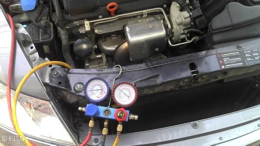 在使用汽车空调之前,应检查冷凝器、蒸发器表面的清洁情况。如果灰尘较多,应予以清洗并用压缩空气吹净。还要检查各开关、控制元件的性能是否可靠、空调是否缺氟。制冷剂不足是空调失效的原因之一。加注制冷剂时,要注意制冷剂是否泄漏,也可以通过观察压缩机零件表面、软管、管子接头处油迹的多少来判断。如果油迹很多,说明系统泄漏,应及时进行修理。